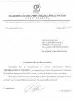The legislature of the republic recently received the response telegram from the chairman of "The Fair Russia" party Sergei Mironov.