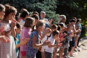 Each participant is commemorated by a pennant for children, and children are given a sweet present from the deputy of the Supreme Council Ivan Nedelkov.