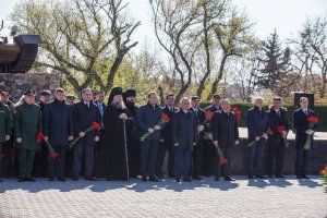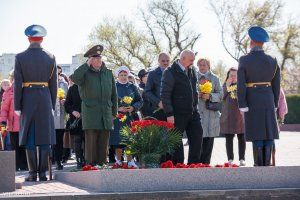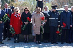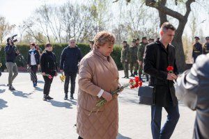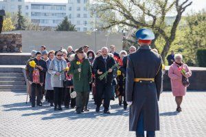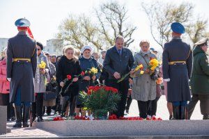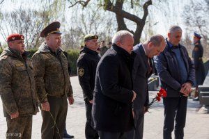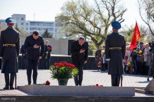 The leaders of the republic and representatives of public organizations laid flowers today at the capital's Memorial of Glory to the Eternal Flame and graves, where the Soviet soldiers – the liberators of Tiraspol and the natives of Pridnestrovie who fell on the fronts of the Second World War – are buried.