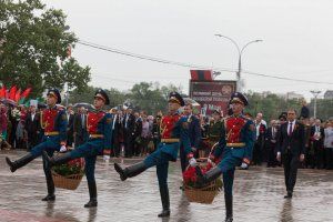 73 years have passed since the end of the Great Patriotic War, which took millions of lives. A traditional military parade was held in the main square of Tiraspol in honor of the Great Victory Day. The ceremony of raising the Banner of Victory took place before its beginning. Participation in it was received by President Vadim Krasnoselsky, Speaker of the Parliament Alexander Shcherba, Head of the Government Alexander Martynov, the First President of the PMR Igor Smirnov.