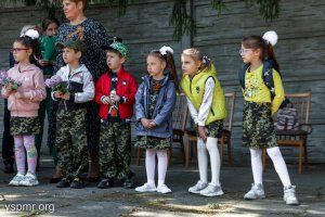 Schoolchildren and kindergarteners read poems and sang songs today in gratitude for the feat and the Great Victory.