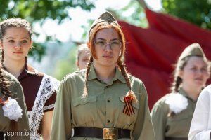 Veteran of the Great Patriotic War Igor Ilyin and home front worker Anna Shivyakova were invited to the commemorative rally. Igor Rostislavovich Ilyin at the age of 98 came to the event accompanied by his relatives. He served in the Red Army during the war years. He published during peacetime the materials and books about the war. Candidate of Agricultural Sciences was the editor of scientific publications of the Pridnestrovian Research Institute, was an Honorary Member of the Dokuchaev Society of Soil Scientists of Russia, was a member of the Union of Writers and the Union of Journalists of Pridnestrovie.