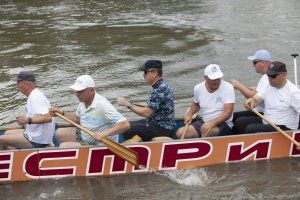 The regatta started at the Bendery rowing base "Chaika". 59 people took part in it as a part of 11 crews. The candidate for master of sports of the USSR in rowing, Honorary President of the PMR Rowing Federation Vadim Krasnoselsky with his wife came out to water. Among the participants - Chairman of the Supreme Council Alexander Korshunov and parliamentarian Sergey Pisarenko. At 16.45, the sounds of the siren and the beats of the metronome indicated a minute of silence. The participants of the regatta lowered wreaths and fresh flowers on the Dniester waters in memory of the fallen defenders. Then the rowers passed 12 km waterway and finished near the Yunost sports camp in Mereneshty