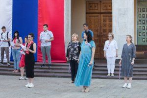 Despite quarantine, Pridnestrovie is celebrating Day of Russia. The youth renewal together with the Union of Russian Communities held mass event "Together with Russia" at the drama theater in the morning. Deputy chairman of the PMR Supreme Council Galina Antyufeyeva, Chairman of the Union of Russian Communities Viorika Kokhtareva, and coordinator of Rossotrudnichestvo projects in Pridnestrovie Nikolai Zhuravlev took part in it. Young people made a flash mob and sang the Russian anthem. The melody familiar to all Pridnestrovians was heard from afar. The fact that Day of Russia is celebrated at the Drama Theater was visible from afar - a seven-meter Russian flag fluttered on the building’s facade.