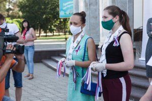 The young people handed out ribbons of the Russian tricolor to passers-by and motorists. All quarantine measures were complied: distance, masks and gloves.