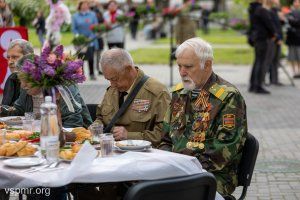 The traditional May 9 dugout was organized in Tiraspol. It is held every year. Veterans, home front workers, blockade survivors, and their relatives gather at the table. They listen together with the first persons of the state to the songs of the war years and remember the heroes. Veterans of the Great Patriotic War Vladimir Ivanovich Gromov, Alexei Ivanovich Zhdanov and Konstantin Ivanovich Puganov, home front worker Galina Semyonovna Shcherbina, veteran of the Armed Forces Valery Ivanovich Glazkov and his wife Valentina Fedorovna were among the guests of honor this year. The first persons of the republic were with the veterans. The guests were treated to traditional soldier's porridge, which was prepared here, in the field kitchen, and sweet tea. The obligatory program includes songs of the war and about the war. The guests sang compositions known for many decades together with the performers. Here are the famous "Blue Handkerchief", "Cranes", "Dugout", "At the nameless height", "Katyusha" and "Victory Day", of course.