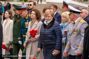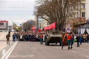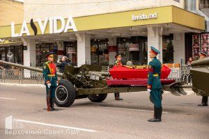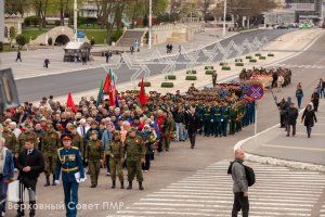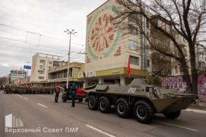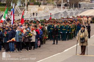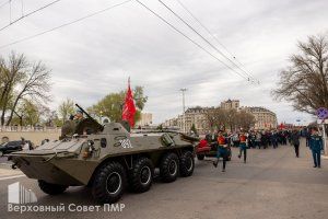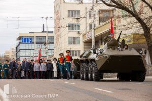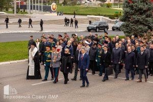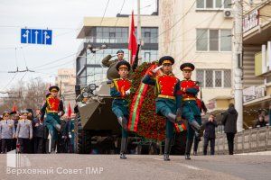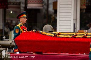 The remains of an unknown soldier were reburied at the Glory Memorial in Tiraspol. The ceremony was preceded by a funeral procession. The Red Army hero, who like thousands of soldiers and officers liberated the Soviet people from fascism and Nazism during the Great Patriotic War, was seen off on his final journey solemnly and with military honors. An armored personnel carrier with a coffin on an artillery gun carriage drove along Suvorov Square to the memorial complex. The funeral procession was attended by the top officials of the state, deputies of the Supreme Council, public figures, military personnel, activists of the Heirs of Victory movement, cadets, Suvorov military college pupils, cadets, and young army members. The movement of the column was accompanied by mourning music and melodies of songs from the war years performed by the Orchestra of the General Staff of the Ministry of Defense of the Pridnestrovian Moldavian Republic.