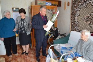 Member of the Supreme Council Igor Buga, deputy of the City Council Yuri Kucherenko and members of Tiraspol council of veterans congratulated today rear worker, labor veterans Agniya Pavlovna Nesterenko on 95th anniversary.
