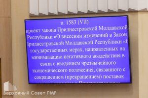 The Supreme Council of the Pridnestrovian Moldavian Republic supported all proposed amendments to the law "On state measures aimed at minimizing the negative impact in connection with the introduction of a state of emergency economic situation associated with the reduction (termination) of natural gas supplies to the Pridnestrovian Moldavian Republic" in two readings at today's plenary session. They will enter into force after signing by the PMR President.