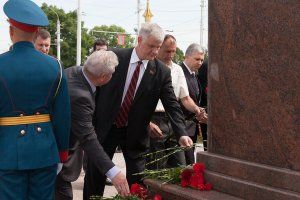 The Chairman of the Supreme Council Vadim Krasnoselsky had a speech anticipating laying flowers on the graves of the dead defenders of the city at the memorial service.
