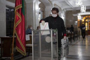 Voting for candidates to the Supreme and City Councils takes place from 7:00 am to 20:00 pm in Tiraspol, polling station No. 224, which is located in the City House of Culture. Compliance with the standards that ensure the maximum level of security of citizens. Hands are treated with an antiseptic, a mask and gloves are given at the entrance. The necessary distance between people is maintained. The voter shows the necessary pages of the passport. Polling station No. 224 is located in the center of the capital, but the turnout in the morning is not the highest here. As of 12:00, 70 out of 1035 registered voters voted.