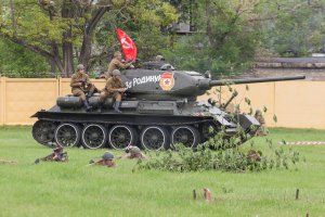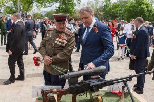 Hundreds of Pridnestrovians passed through the streets of Tiraspol in the column of "The Immortal Regiment". Participants of the event laid thousands of flowers to the graves of soldiers who died in battle. A memorial procession was completed at the military unit of the operational group of Russian troops. Here for residents and visitors of the capital were organized a festive exposition of military equipment, an exhibition of retro cars of the war years. Russian servicemen prepared a spectacular reconstruction of the April 1944 battle. The victorious shot of the legendary T-34 tank thundered in memory of all those who liberated their homeland.