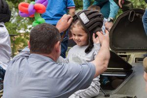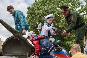 The whole families came to the holiday, organized by OGRV. Fathers, grandfathers show grandchildren and sons samples of military equipment. Russian servicemen tell and explain to the guys showing genuine interest, what for the special military equipment is. The fighting vehicles do not have free space. Children want to sit at the wheel, imagine themselves a real artilleryman, controlling an anti-aircraft gun.