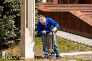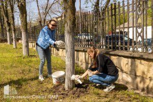 The staff of the Supreme Council today took part in the Saturday voluntary work day. They improved the area adjacent to the building: they whitewashed the curbs and trees, cleaned and painted, got rid of excess grass around the entire perimeter.