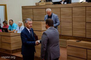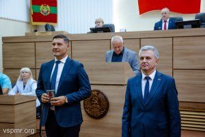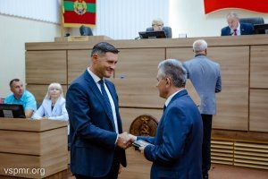 Then PMR President Vadim Krasnoselsky presented state awards. The PMR Central Election Commission Chairman Stanislav Kasap was awarded the Order of Labor Glory. The Chairman of the Committee on Economic Policy, Budget and Finance of the Supreme Council Viktor Guzun was awarded the badge “For Contribution to Parliamentarism”.