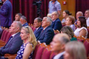 Deputies of the Supreme Council, heads of ministries and departments, heads of state administrations and city and district councils, as well as representatives of public organizations of Pridnestrovie gathered in the great hall of the Palace of the Republic. A film on the big screen was shown at the beginning of the solemn meeting about the history of the creation and formation of the republic, about the present day of Pridnestrovie.