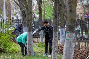 Employees of the Office of the Supreme Council went to clean up the territory today. They whitewashed trees, curbs, removed fallen leaves and swept sidewalk paths.