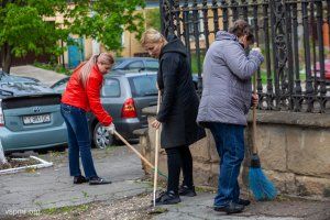 Spring is the time of general cleaning for everyone. This is especially true on the eve of the Easter and May holidays. Every yard, street, neighborhood and city, parks and squares are being put in order. Employees of the Office of the Supreme Council are no exception. Landscaping the area around the building is already a familiar activity for those who usually wear formal shirts with ties and classic sheath dresses to work. They have changed office clothes for sweatshirts, jeans and tracksuits today, at the end of the working day. They picked up shovels, brooms, rakes, brushes and buckets of lime.