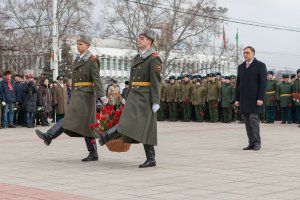 Solemn events took place at the capital's memorial of Glory. Special congratulations to the military sounded. They are the first to stand up for the protection of families and Motherland. Military servicemen of the Armed Forces of Pridnestrovie, veterans of the Great Patriotic War, all those who served and those who have to defend their homeland, were congratulated by the Chairman of the Supreme Council Alexander Shcherba on the holiday.