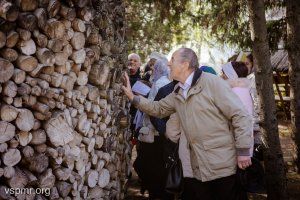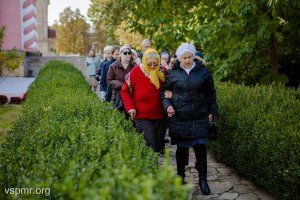 Despite the fact that there were both completely blind people and those who see very poorly, the group walked around the territory of the monastery. They walked slowly along the stone-lined paths, warning each other about uneven spots along the way.