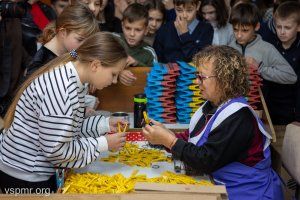 The head of the stamping and cord section and one of the elders of the enterprise Leonid Levintsa showed the guests what and how clothespins, hangers and electrical extension cords are made of. He said that every detail and every stage of production has its own significance and their quality affects the final product. Sixth-graders were able to try making products themselves under the guidance of experienced assemblers. It was a discovery for many of them that a blind person could work fully.