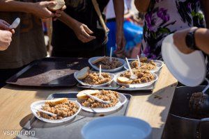 Everyone was treated to delicious porridge and aromatic tea, prepared right there in the field kitchen during the intermission of the concert.